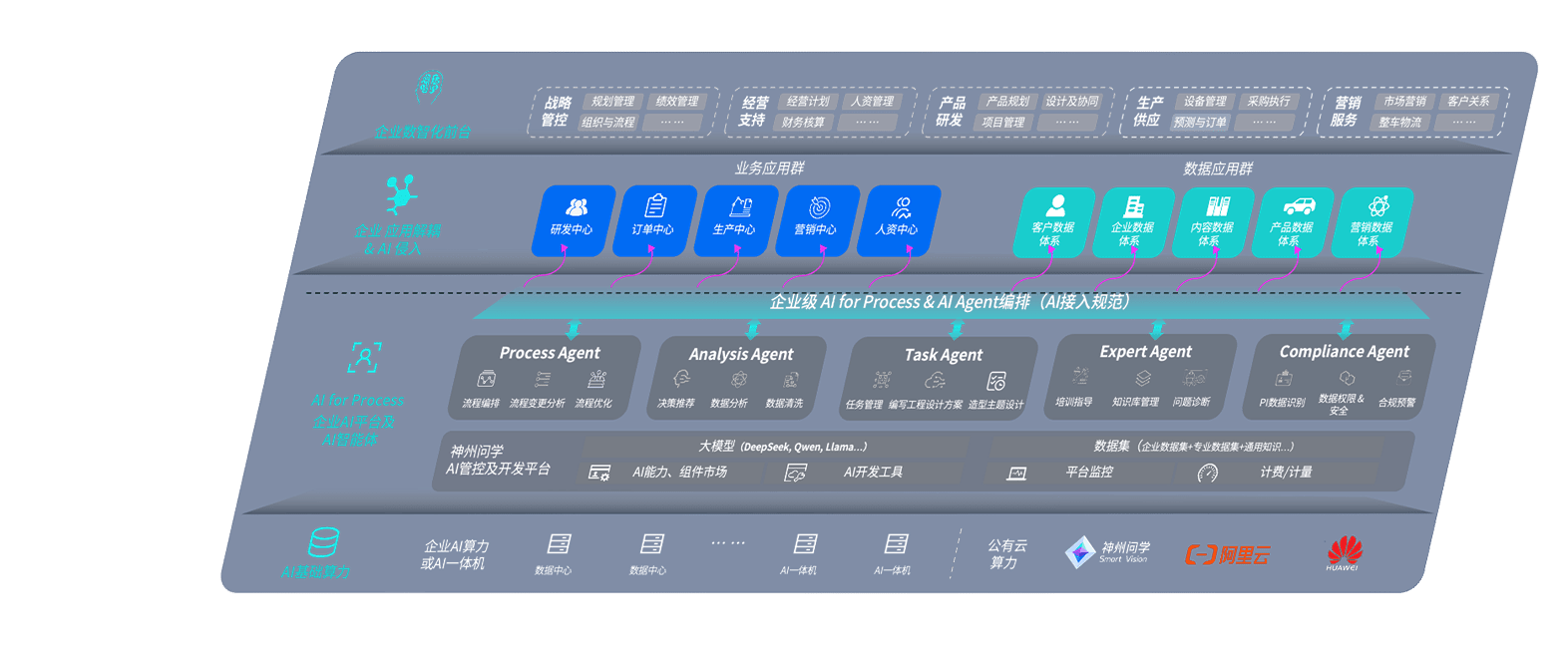 端到端的一站式AI工作空间深度融合了从企业战略规划到日常经营的全流程业务板块,,,定向解决车企内部领域多、、、部门多、、、、链条长、、、、场景碎片化等难题,,支持车企快速构建以AI为核心的生产力写作体系,,,实现任务执行与AI能力的无缝集成与交互